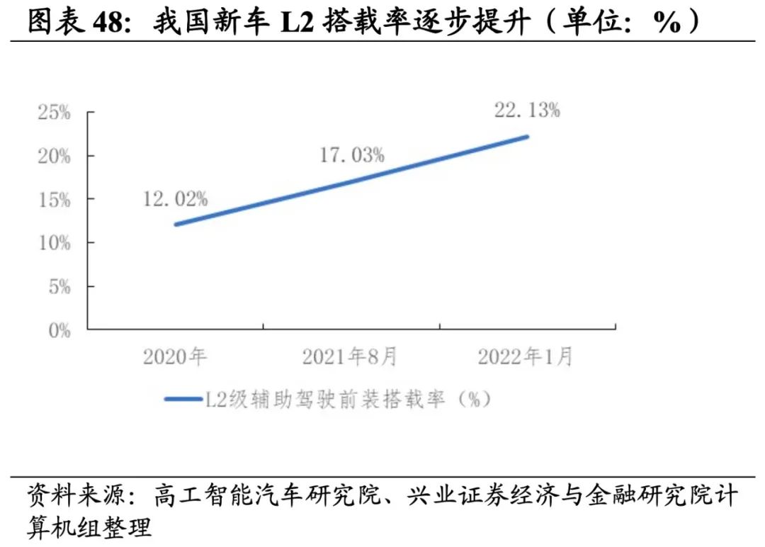 后续来看,复工复产持续推进、L2级别自动驾驶渗透率稳步提升的背景下持续看好智能驾驶发展机遇。目前上海、吉林区域复工复产如期推进,整车厂的全面复工复产将有效拉动产业链上下游联动,智能驾驶产业链迎来全面好转。同时,L2级别自动驾驶汽车渗透率稳步提升,今年有望成为国产高级驾驶辅助系统(ADAS)供应商规模化前装量产的关键年份,对于整个智能驾驶行业来说,L2级辅助驾驶市场红利已经到来。建议关注渗透率提升空间依然较大的智能座舱,以及整车厂中加速布局“电动化、智能化”的优质公司。