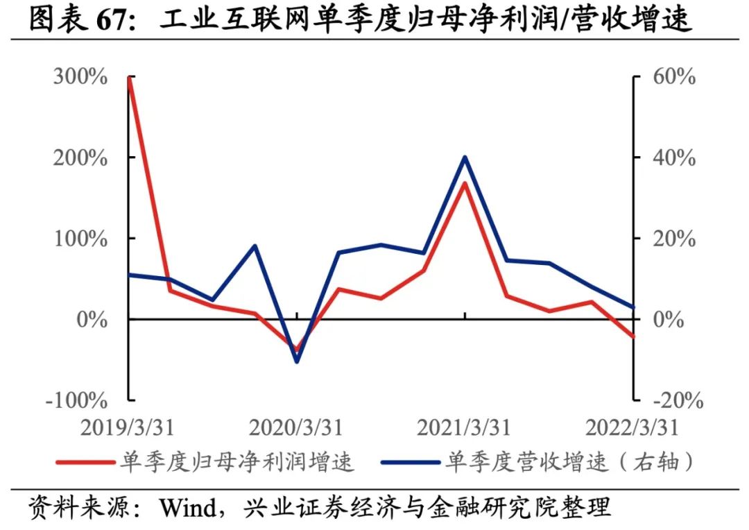 8)运营商:归母净利润增速有所回落,营收增速有所回升。22Q1归母净利润增速、营收增速分别是8.6%、12.3%,增速较21Q4回落了6.9pct、提升了7.1pct,归母净利润增速有所回落,营收增速有所回升。