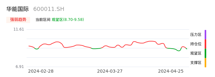 我们来看一下该股的九方特色指标强弱趋势的情况:华能国际近日从持仓区下穿到观望区,股价出现持续性调整行情。短期已经转为空头行情,且下跌动能仍未衰竭。建议继续谨慎观望。