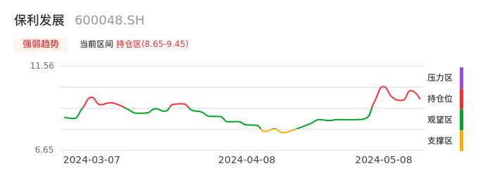 我们来看一下该股的九方特色指标强弱趋势的情况:保利发展自04月30日从压力区回到持仓区。股价近期持续调整。后续重点关注能否站稳多空分界点:8.65元。如被有效击穿则将进入空头行情。