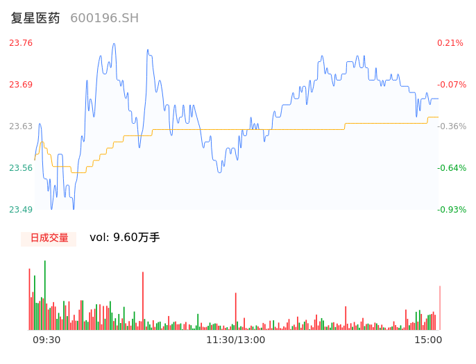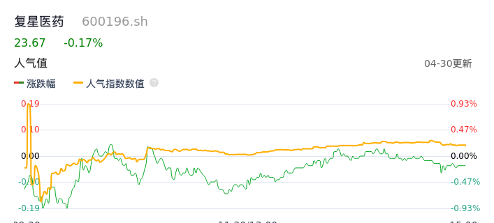 04月30日,复星医药收报23.67,股价涨幅-0.17%,成交金额2.27亿元,换手率0.45%。