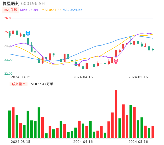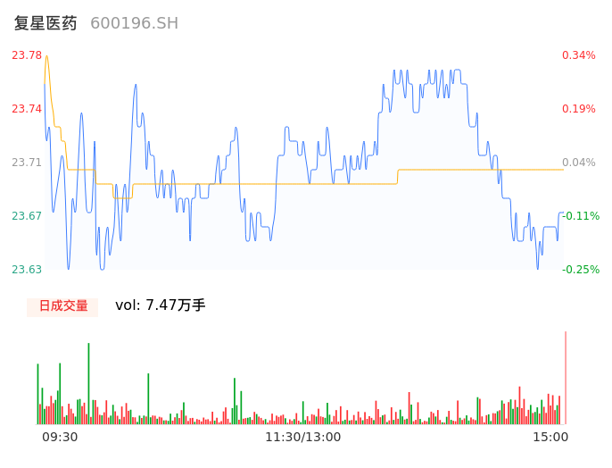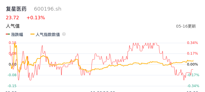 05月16日,复星医药收报23.72,股价涨幅0.13%,成交金额1.77亿元,换手率0.35%。