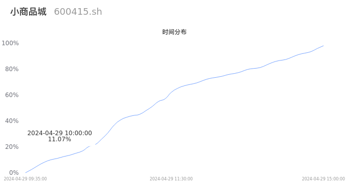 600415小商品城2024年04月29日成交53.43万手,成交金额4.64亿元,相较昨日放量14.42万手,换手率0.98%,成交清淡。