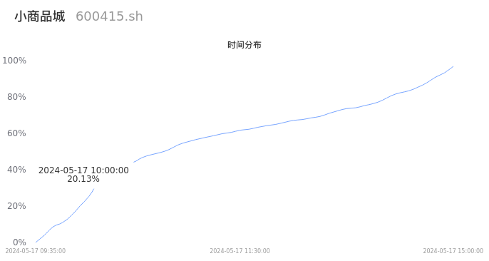 600415小商品城2024年05月17日成交29.96万手,成交金额2.52亿元,相较昨日放量5.56万手,换手率0.55%,成交清淡。