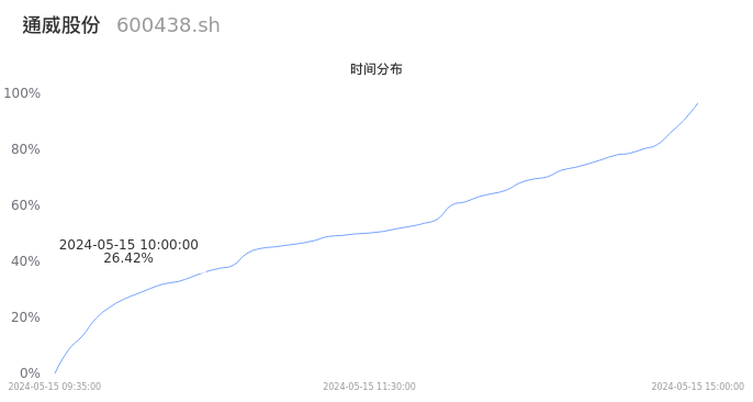 600438通威股份2024年05月15日成交23.82万手,成交金额5.32亿元,相较昨日缩量1.95万手,换手率0.53%,成交清淡。