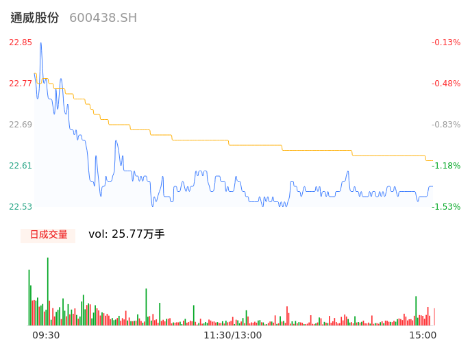 05月14日,通威股份收报22.57,股价涨幅-1.35%,成交金额5.83亿元,换手率0.57%。