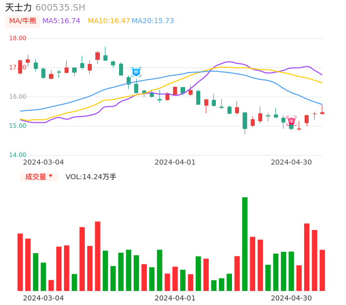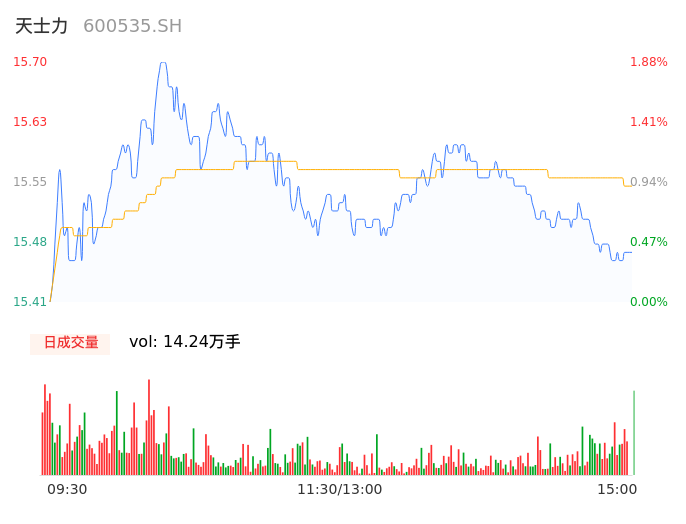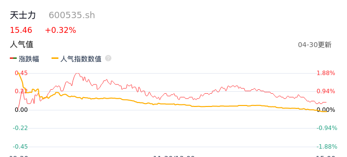 04月30日,天士力收报15.46,股价涨幅0.32%,成交金额2.22亿元,换手率0.95%。