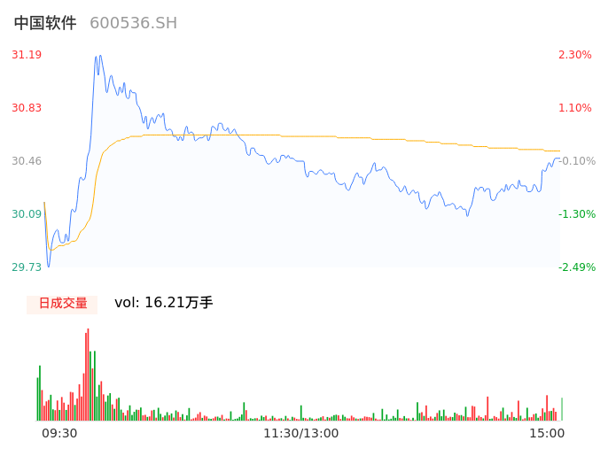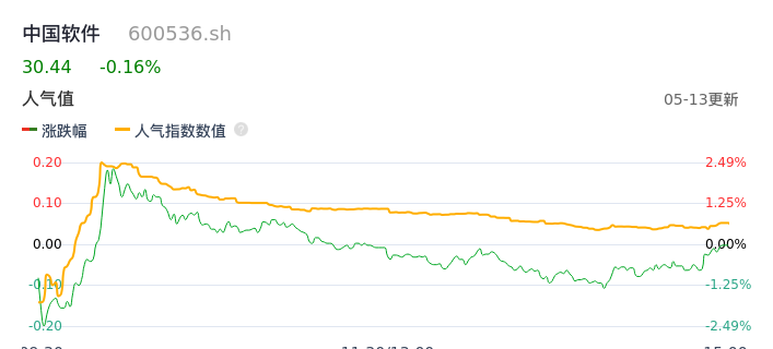 05月13日,中国软件收报30.44,股价涨幅-0.16%,成交金额4.95亿元,换手率1.92%。