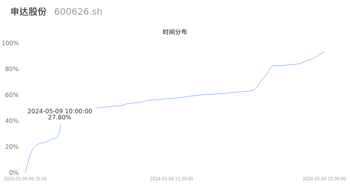 600626申达股份2024年05月09日成交7.34万手,成交金额2195.17万元,相较昨日放量1.21万手,换手率0.86%,成交清淡。