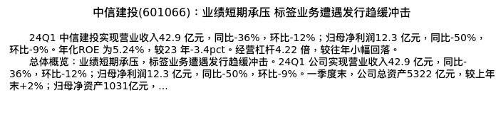 值得注意的是:2024年04月招商证券的郑积沙/张晓彤分析师,首次发布关于中信建投的研究报告,标题为:中信建投(601066):业绩短期承压 标签业务遭遇发行趋缓冲击。