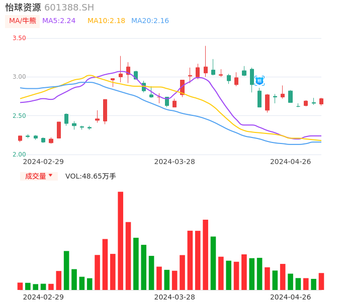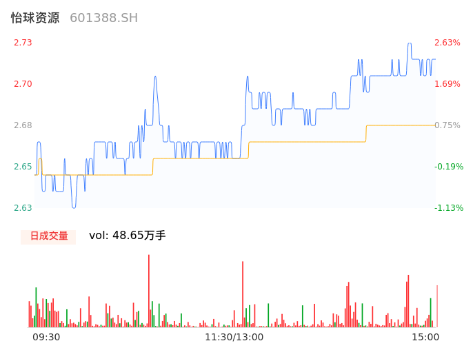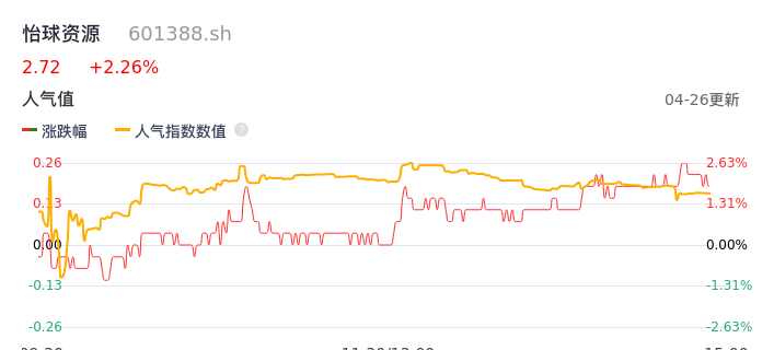 04月26日,怡球资源收报2.72,股价涨幅2.26%,成交金额1.30亿元,换手率2.21%。