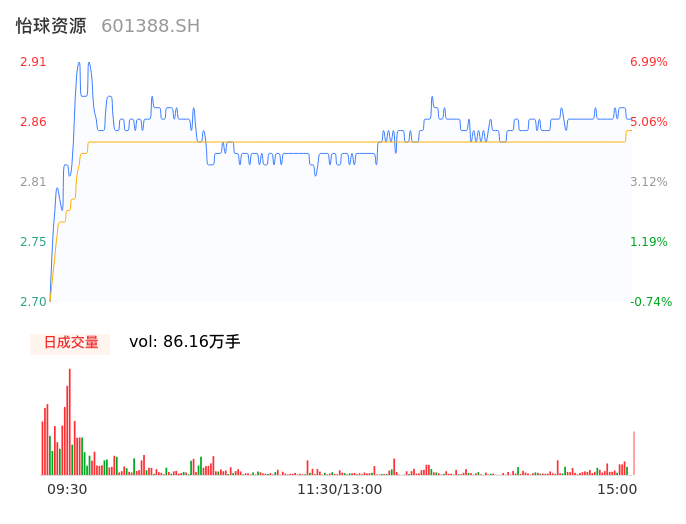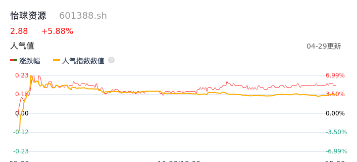 04月29日,怡球资源收报2.88,股价涨幅5.88%,成交金额2.45亿元,换手率3.91%。