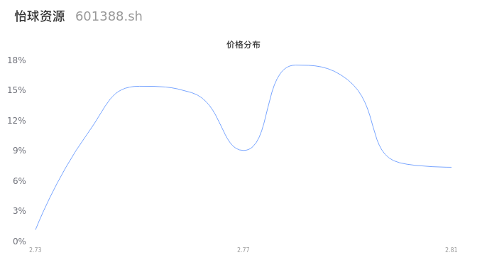 然后我们来看下当日成交的价格分布。经过分析发现,该股票当日成交价格波动低于10个最小波动价位,由于可以参考的样本量非常少,价格分布分析的结果不具有指导意义,下图仅供参考。