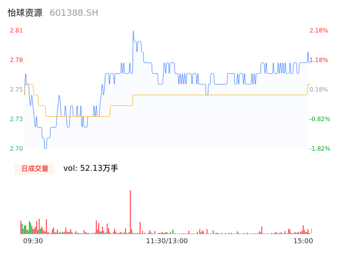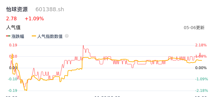 05月06日,怡球资源收报2.78,股价涨幅1.09%,成交金额1.44亿元,换手率2.37%。