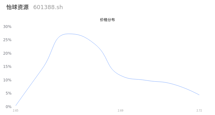 然后我们来看下当日成交的价格分布。经过分析发现,该股票当日成交价格波动低于10个最小波动价位,由于可以参考的样本量非常少,价格分布分析的结果不具有指导意义,下图仅供参考。