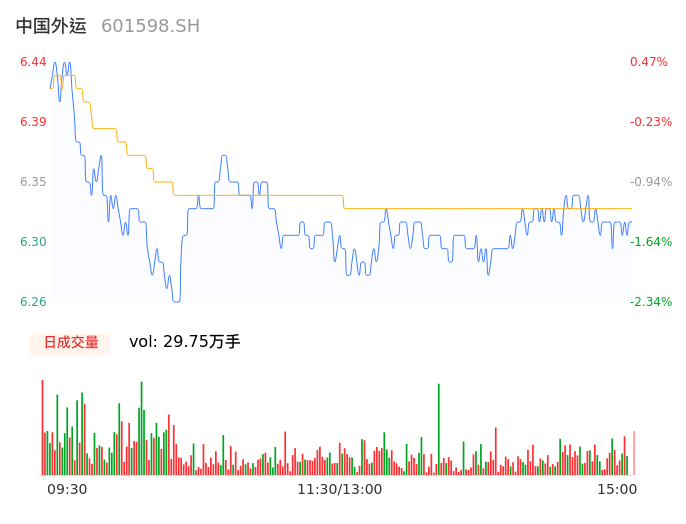 04月26日,中国外运收报6.33,股价涨幅-1.25%,成交金额1.88亿元,换手率0.57%。