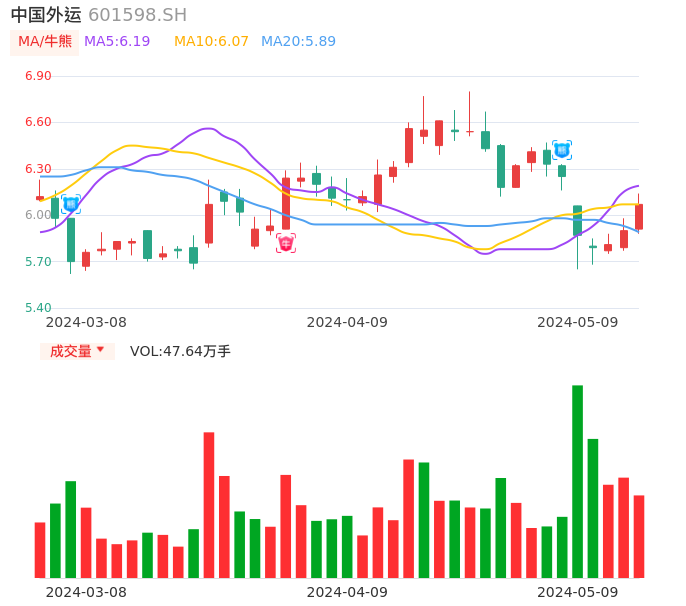 值得注意的是:2024年05月国联证券的田照丰分析师,首次发布关于中国外运的研究报告,标题为:中国外运(601598)2024年一季报点评:货量增速亮眼 利润同比承压。