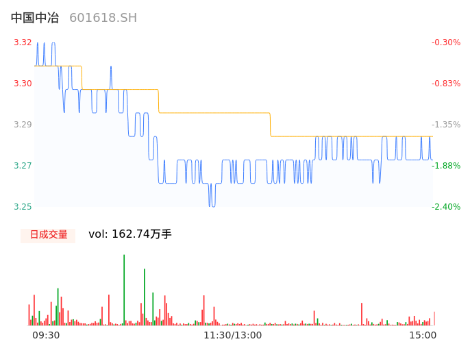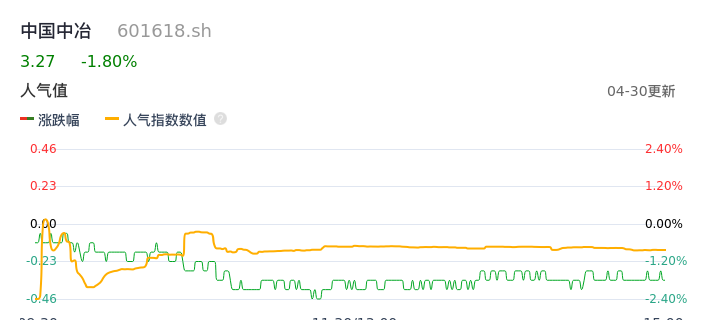 04月30日,中国中冶收报3.27,股价涨幅-1.80%,成交金额5.34亿元,换手率0.91%。