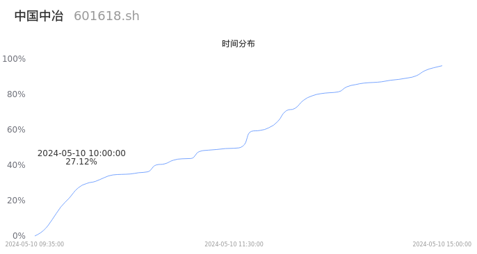 601618中国中冶2024年05月10日成交125.79万手,成交金额4.16亿元,相较昨日放量33.48万手,换手率0.70%,成交清淡。