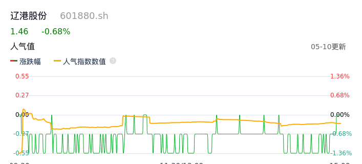 05月10日,辽港股份收报1.46,股价涨幅-0.68%,成交金额8063.28万元,换手率0.29%。