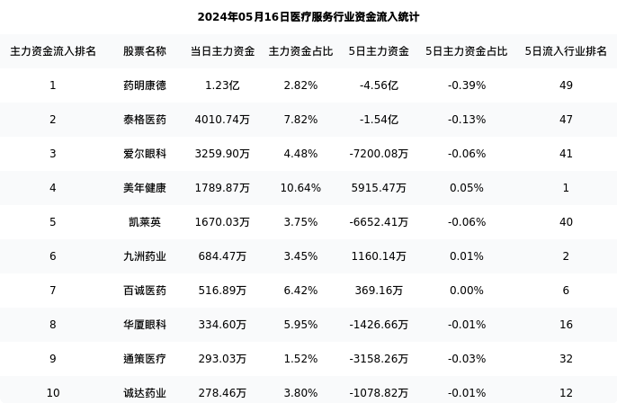 从主力资金流向来看,医疗服务行业今日主力资金流入35.67亿元,在所有申万二级行业中排名:100/131。