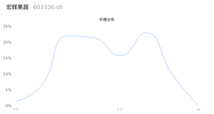 然后我们来看下当日成交的价格分布。经过分析发现,该股票当日成交价格波动低于10个最小波动价位,由于可以参考的样本量非常少,价格分布分析的结果不具有指导意义,下图仅供参考。