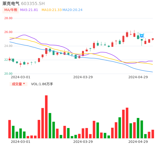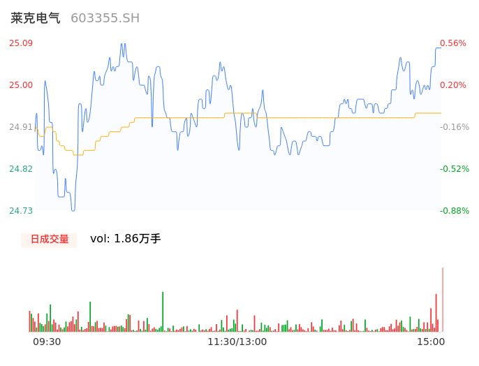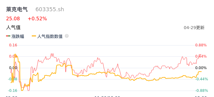 04月29日,莱克电气收报25.08,股价涨幅0.52%,成交金额4640.68万元,换手率0.33%。