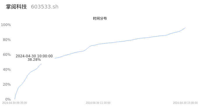 根据成交分布分析,该股票当天缩量成交,成交清淡。时间上看,早盘前半小时成交量占据当天总成交量的38.28%;价格上看,成交呈现中间峰。成交分布分析主要研究股票成交的分布特性,不具有预测功能,请知悉。