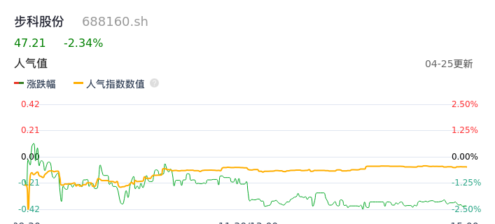 04月25日,步科股份收报47.21,股价涨幅-2.34%,成交金额7285.34万元,换手率1.82%。