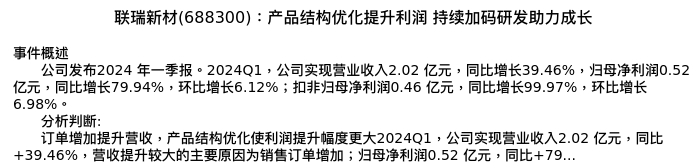 值得注意的是:2024年04月华西证券的杨伟/胡杨/赵恒祯分析师,首次发布关于联瑞新材的研究报告,标题为:联瑞新材(688300):产品结构优化提升利润 持续加码研发助力成长。