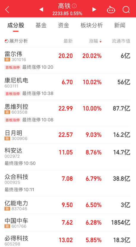 高铁概念股震荡拉升,雷尔伟、思维列控、众合科技涨停,康尼机电、辉煌科技、新筑股份、中国中车等涨幅靠前。中国银河证券表示,在设备更新+客流复苏+大修周期三重逻辑演绎下,轨交行业将迎来新一轮景气向上。按往年招标节奏,下半年国铁集团还将进行1—2次动车组新车及高级修采购,铁路装备仍存在预期差。