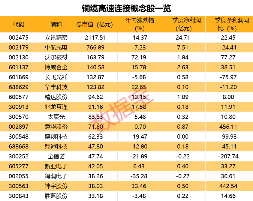 高速铜缆出货量有望高增长,概念股反弹。