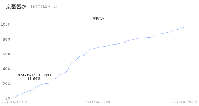 000048京基智农2024年05月14日成交4.56万手,成交金额7760.46万元,相较昨日放量4893手,换手率0.87%,成交清淡。