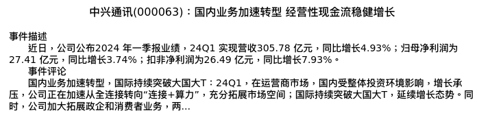 值得注意的是:2024年05月长江证券的于海宁/黄天佑/范超分析师,首次发布关于中兴通讯的研究报告,标题为:中兴通讯(000063):国内业务加速转型 经营性现金流稳健增长。