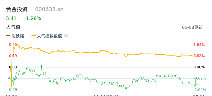 05月08日,合金投资收报5.41,股价涨幅-1.28%,成交金额2548.10万元,换手率1.22%。