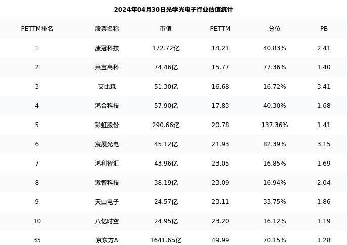 从估值角度看:京东方A最新市盈率PETTM为49.99,在行业内排名35/93,处于70.15分位。