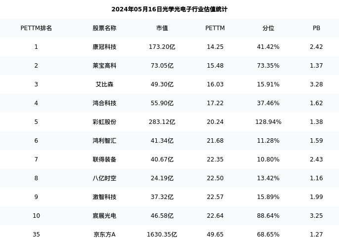 从估值角度看:京东方A最新市盈率PETTM为49.65,在行业内排名35/93,处于68.65分位。