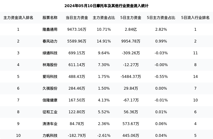 从主力资金流向来看,摩托车及其他行业今日主力资金流入14.75亿元,在所有申万二级行业中排名:70/131。