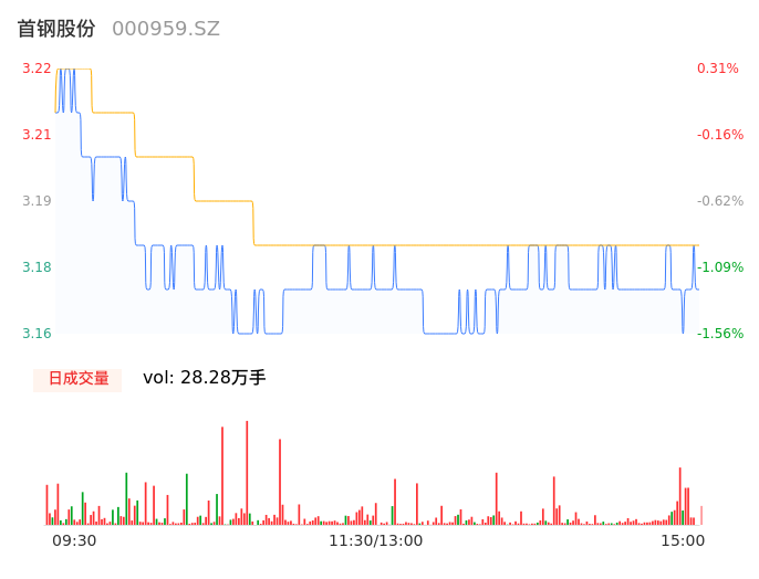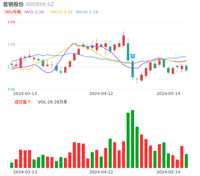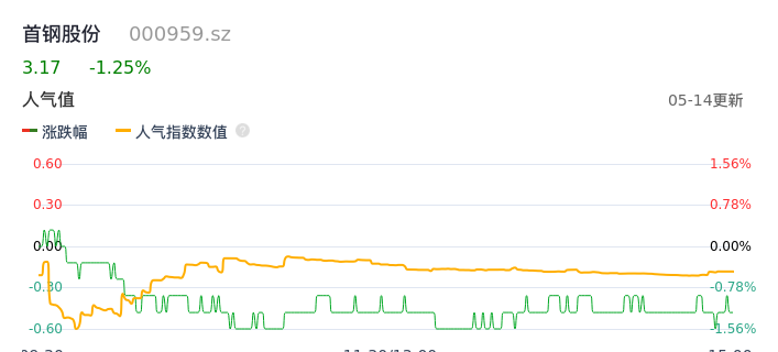 05月14日,首钢股份收报3.17,股价涨幅-1.25%,成交金额8983.58万元,换手率0.47%。