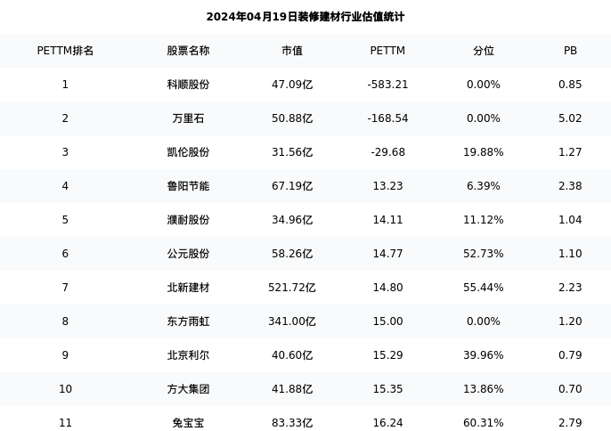 从估值角度看:兔宝宝最新市盈率PETTM为16.24,在行业内排名8/35,处于60.31分位。