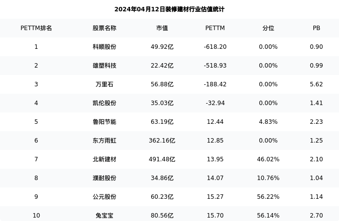 从估值角度看:兔宝宝最新市盈率PETTM为15.70,在行业内排名6/35,处于56.14分位。