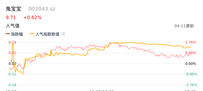 04月11日,兔宝宝收报9.71,股价涨幅0.62%,成交金额6291.77万元,换手率0.89%。
