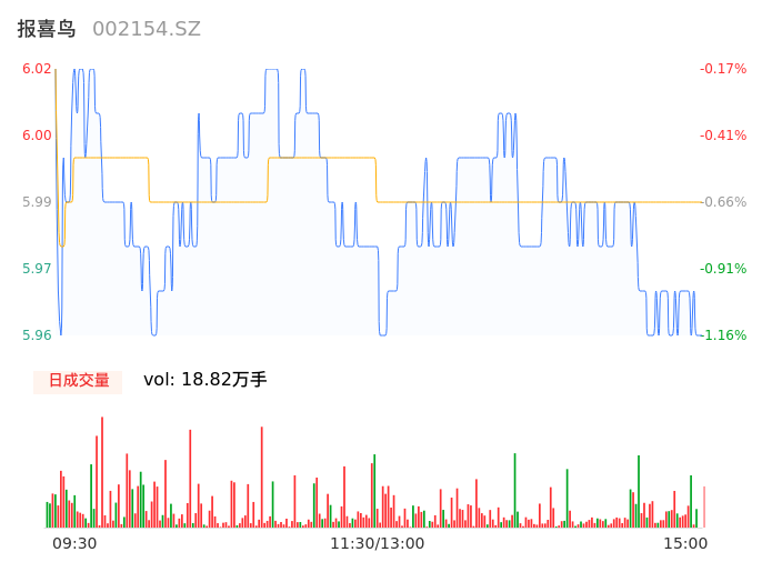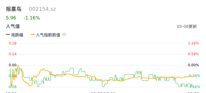 05月08日,报喜鸟收报5.96,股价涨幅-1.16%,成交金额1.13亿元,换手率1.60%。
