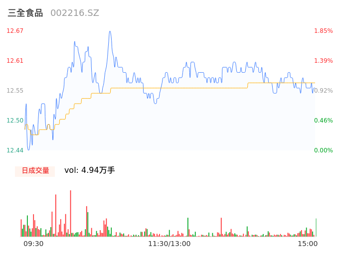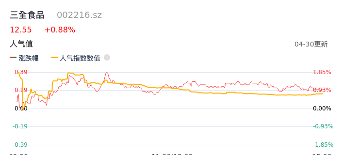 04月30日,三全食品收报12.55,股价涨幅0.88%,成交金额6202.30万元,换手率0.78%。