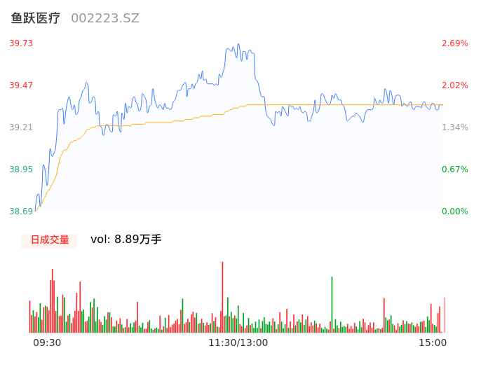 05月09日,鱼跃医疗收报39.35,股价涨幅1.71%,成交金额3.50亿元,换手率0.95%。