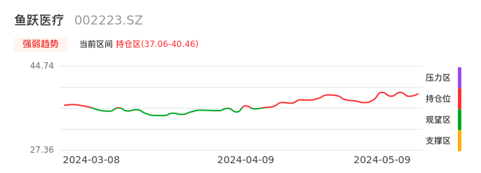 我们来看一下该股的九方特色指标强弱趋势的情况:鱼跃医疗自04月11日从观望区上穿到持仓区。股价近期在多头区域持续强势上扬,上升动能仍较为充足,可积极关注。后续重点关注上方压力位:40.46元是否能突破上攻。