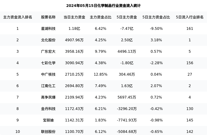 从主力资金流向来看,化学制品行业今日主力资金流入70.19亿元,在所有申万二级行业中排名:88/131。
