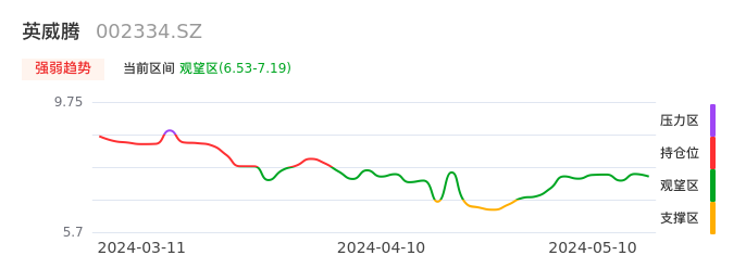 我们来看一下该股的九方特色指标强弱趋势的情况:英威腾自04月24日从支撑区回到观望区。股价经过前期快速下跌后中途弱势整理。现在下跌动能有重新放大迹象,弱势反弹行情可能临近尾声。建议继续谨慎观望。