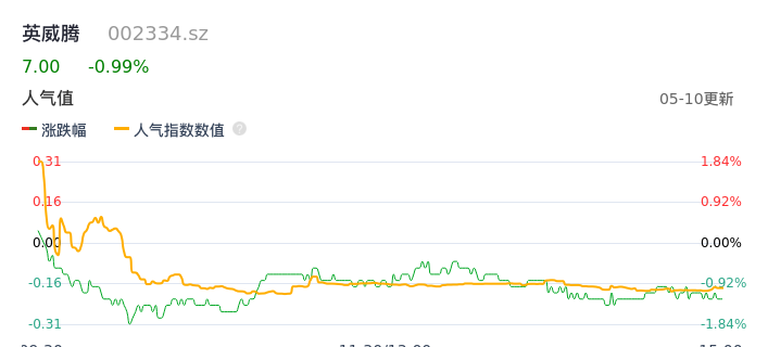 05月10日,英威腾收报7.00,股价涨幅-0.99%,成交金额8547.92万元,换手率1.71%。