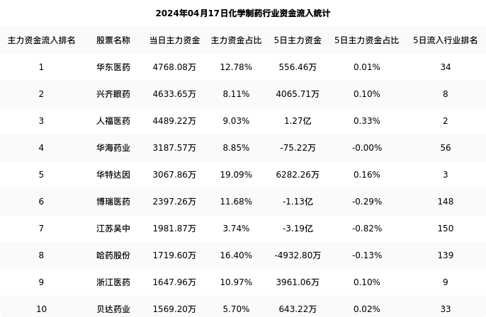 从主力资金流向来看,化学制药行业今日主力资金流入40.63亿元,在所有申万二级行业中排名:40/131。